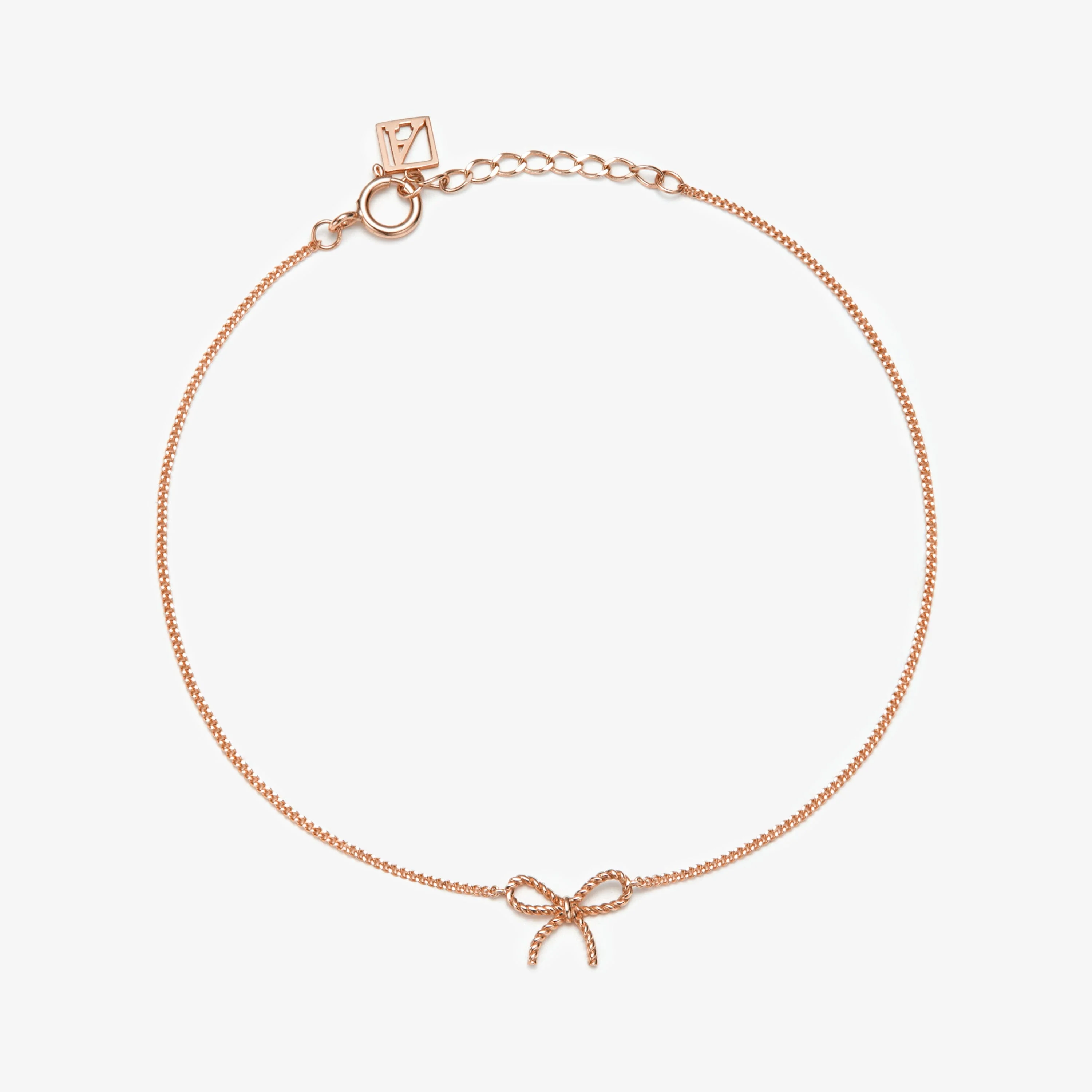 Girl meets grown up with this darling bow. Designed with beaded detailing for a touch of vintage and all the joys of metal. Now make it a triple threat with a cherry red lip and kitten heel. Created for you in 14 karat solid rose gold, this fine bracelet can be worn always, even when you are in the water.