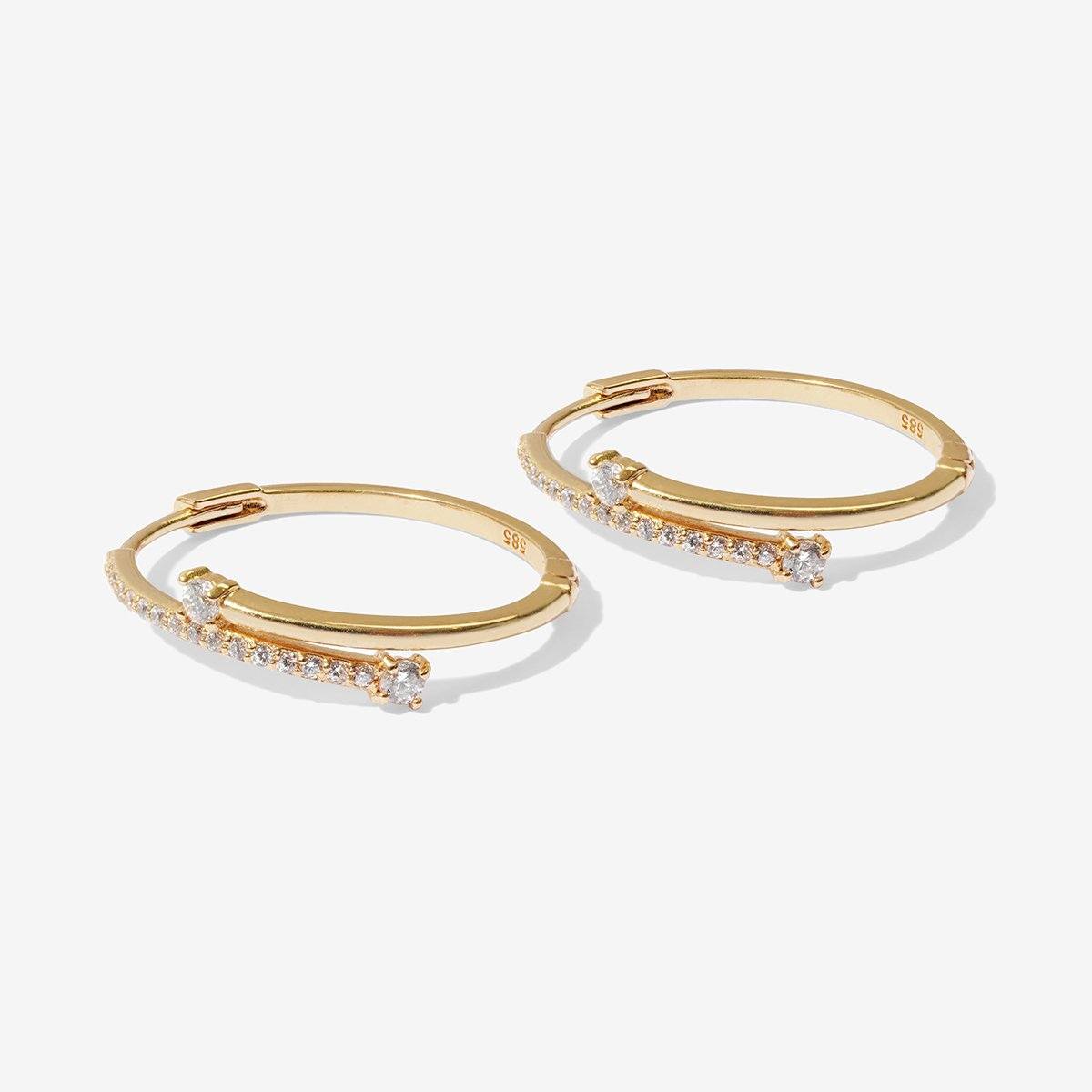 Without further ado we present your new favorite hoops. Celvin's delicately hooped earrings, with wrap around crystal detail will add a subtle statement to your everyday outfit. Pair with a low tussled bun and a simple crisp white shirt. These earrings are created in solid 14 karat white gold, designed for everyday and everywhere, even in the shower or at the gym.