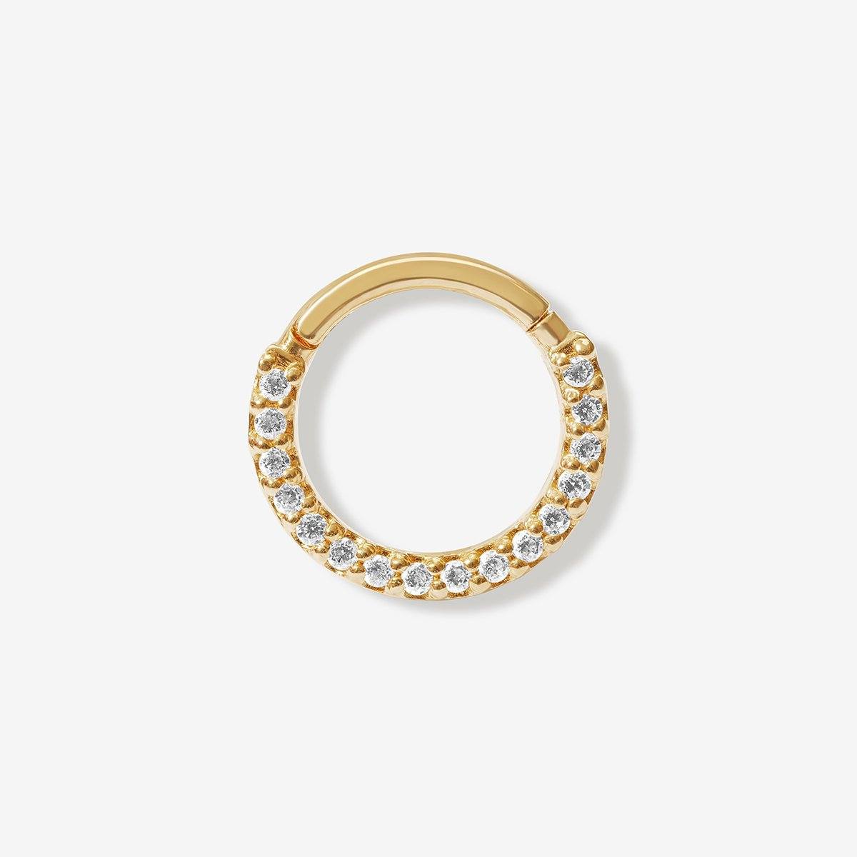 Sleek and simple. Kreed's subtle graphic style, featuring claw crystal detailing, plays well in all your piercings. Suitable for daith, rook, helix and lobe piercings, the click closure makes it easy to take on and off. Created for you in solid 14 karat gold, you'll want to wear this fine earring always, even when working out or in the shower.