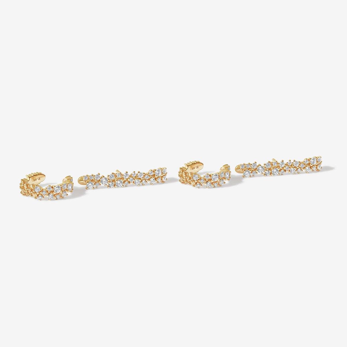 We're crushing on this earring and cuff set right now. Nolan's unique vintage cluster crystal design, featuring a set of statement studs that wraps over the lower lobe as well as matching statement cuff set, will leave everyone asking where did you get those earrings from? Created with a sterling silver base and utilizing luxury 14 karat gold plating, this Adorn Luxe earring set is everything you love about our demi-fine jewelry collection.
