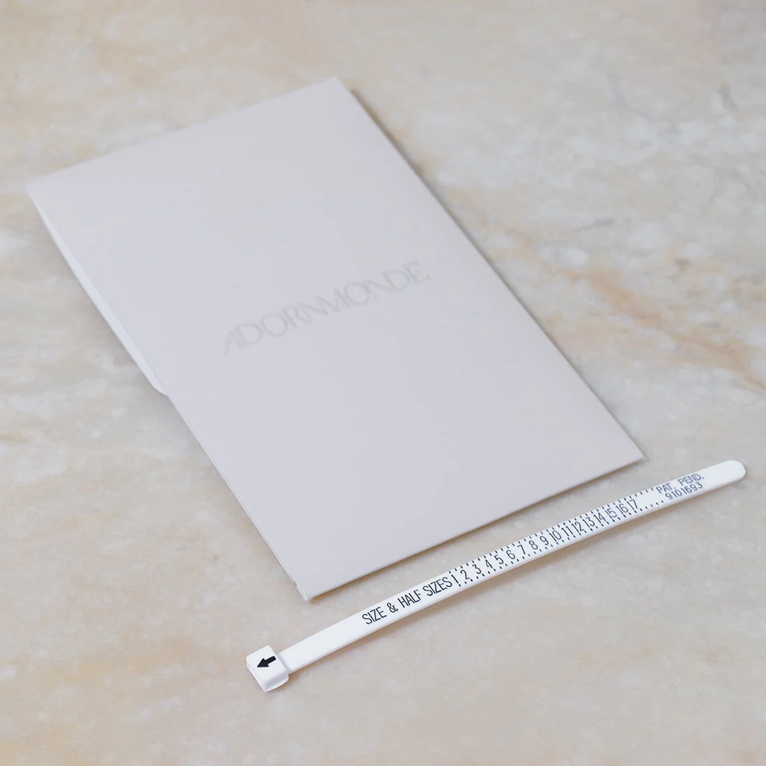 Shop with confidence with this compact ring sizer. Our ring sizer is reusable and accurately sizes fingers from 1-17 US size. It's easy to use, just slip it onto your finger and fasten it like a belt. Make sure you can comfortably remove the ring sizer over your knuckle.